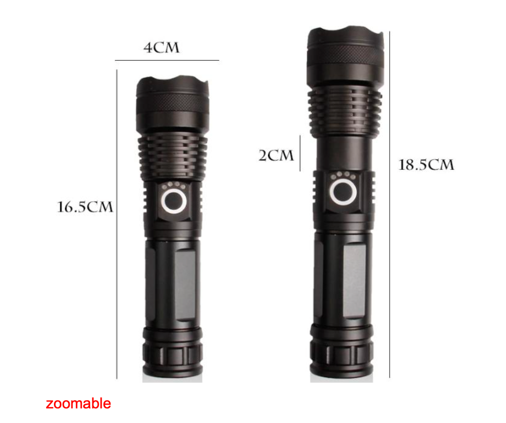 A powerful USB rechargeable zoomable flashlight. It is very easy to change different brightness just by clicking the side switch. Easy charging with a micro USB cable. USB hidden design to avoid the water and debris invade. Four LEDS to show charging or charged. Hidden strobe for emergency use.This flashlight is the perfect choice for a compact, bright, and affordable light to take with you anywhere.